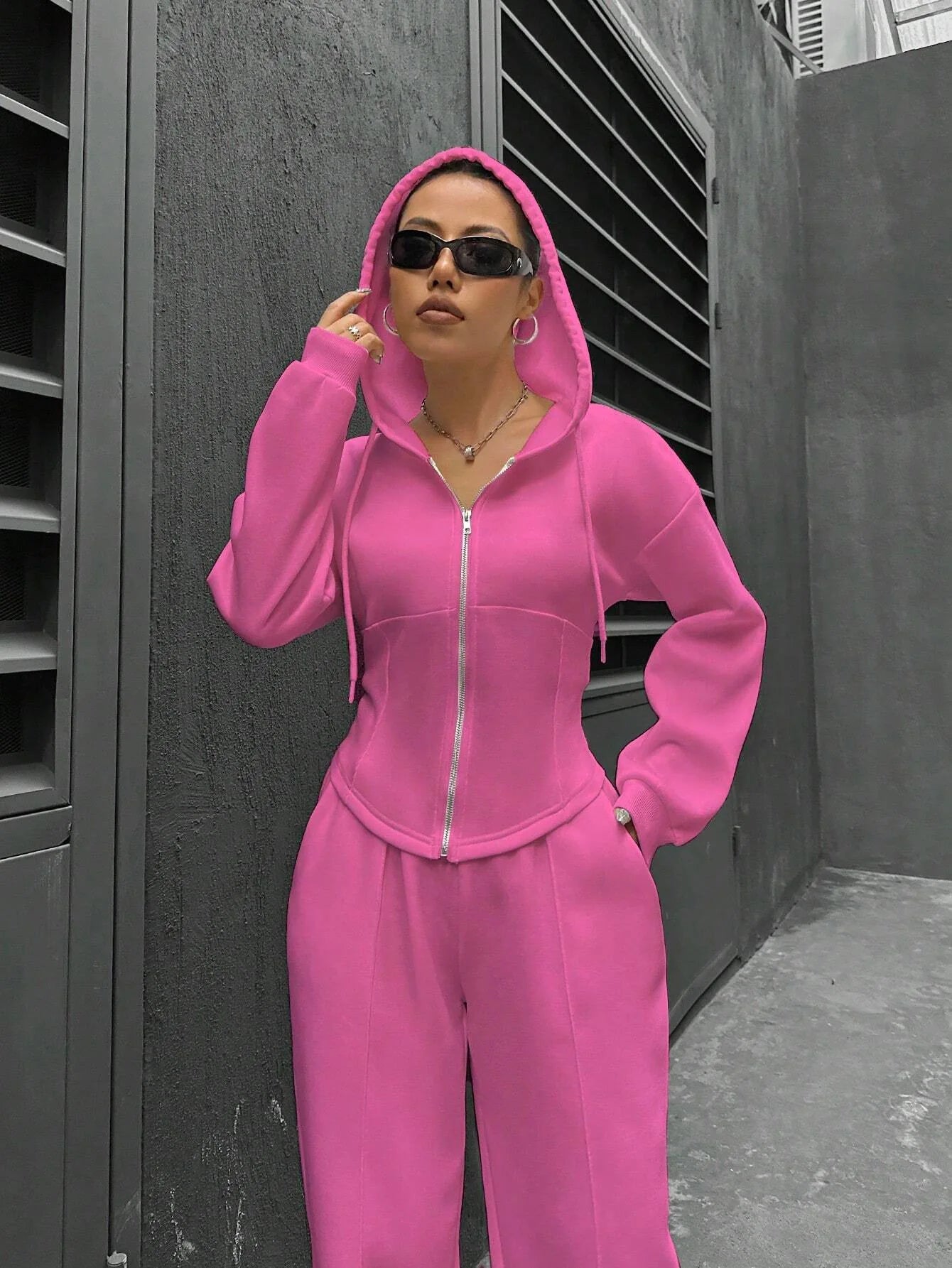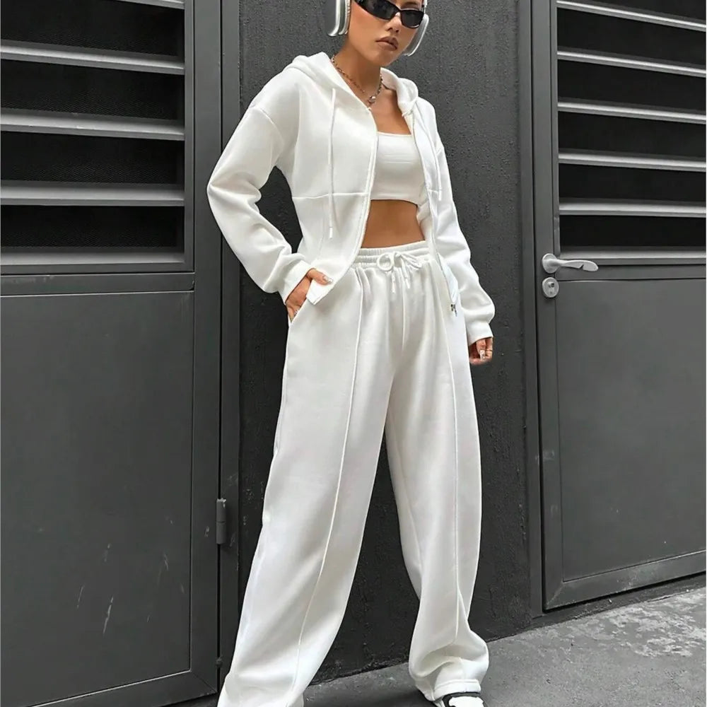 Stylisches Zweiteiler-Set mit Kapuze und Slim-Fit-Schnitt. Komfort und Eleganz vereint. Ideal für Freizeit, Spaziergänge oder informelle Treffen. Modern und bequem für jedes Outfit.