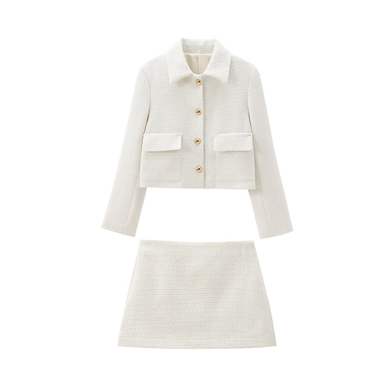 Dieses elegante Set besteht aus einem einreihigen Mantel mit Reverskragen und praktischen Taschen, kombiniert mit einem Minirock in A-Linie, der einen raffinierten und modernen Look verleiht. Hergestellt aus hochwertigem Mischpolyester, bietet es Komfort, Atmungsaktivität und eine perfekte Passform für jeden Anlass.