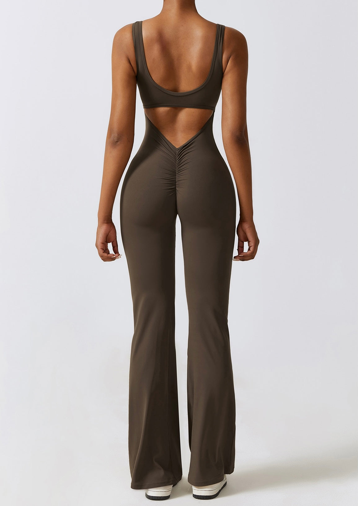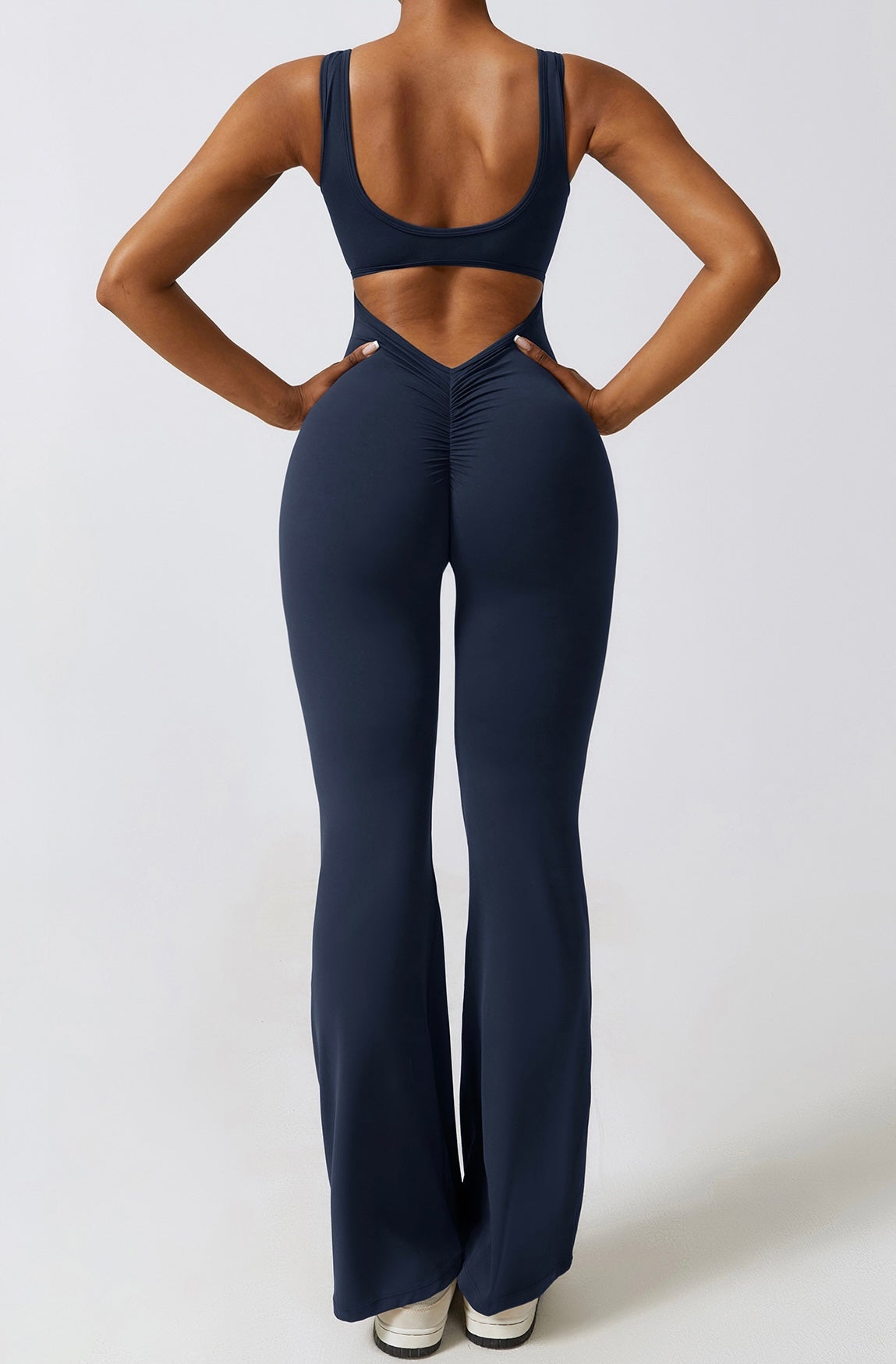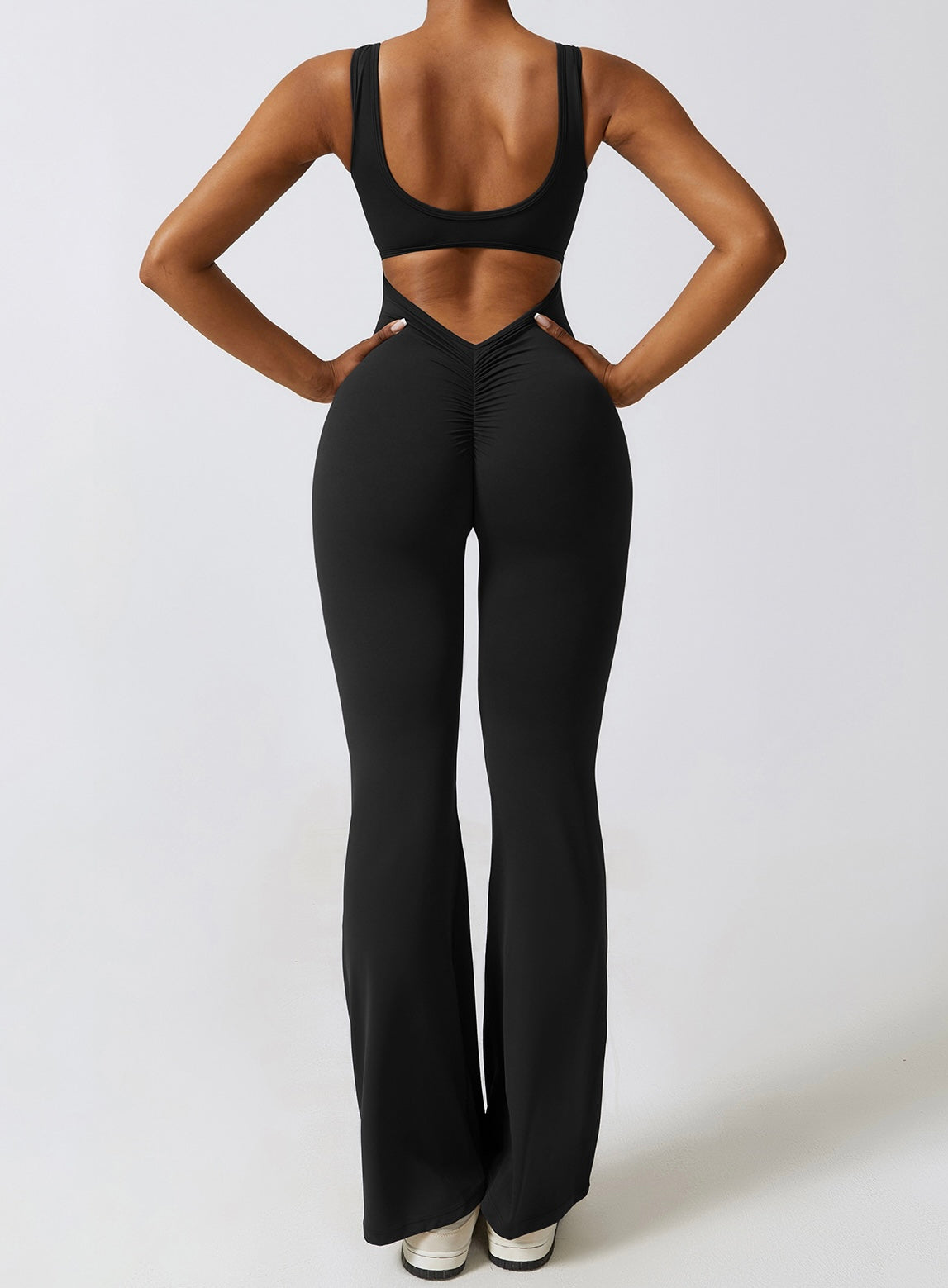 - Elegantes Design: V-Ausschnitt, Scrunch-Effekt und ausgestellte Hosen für Stil und Komfort.