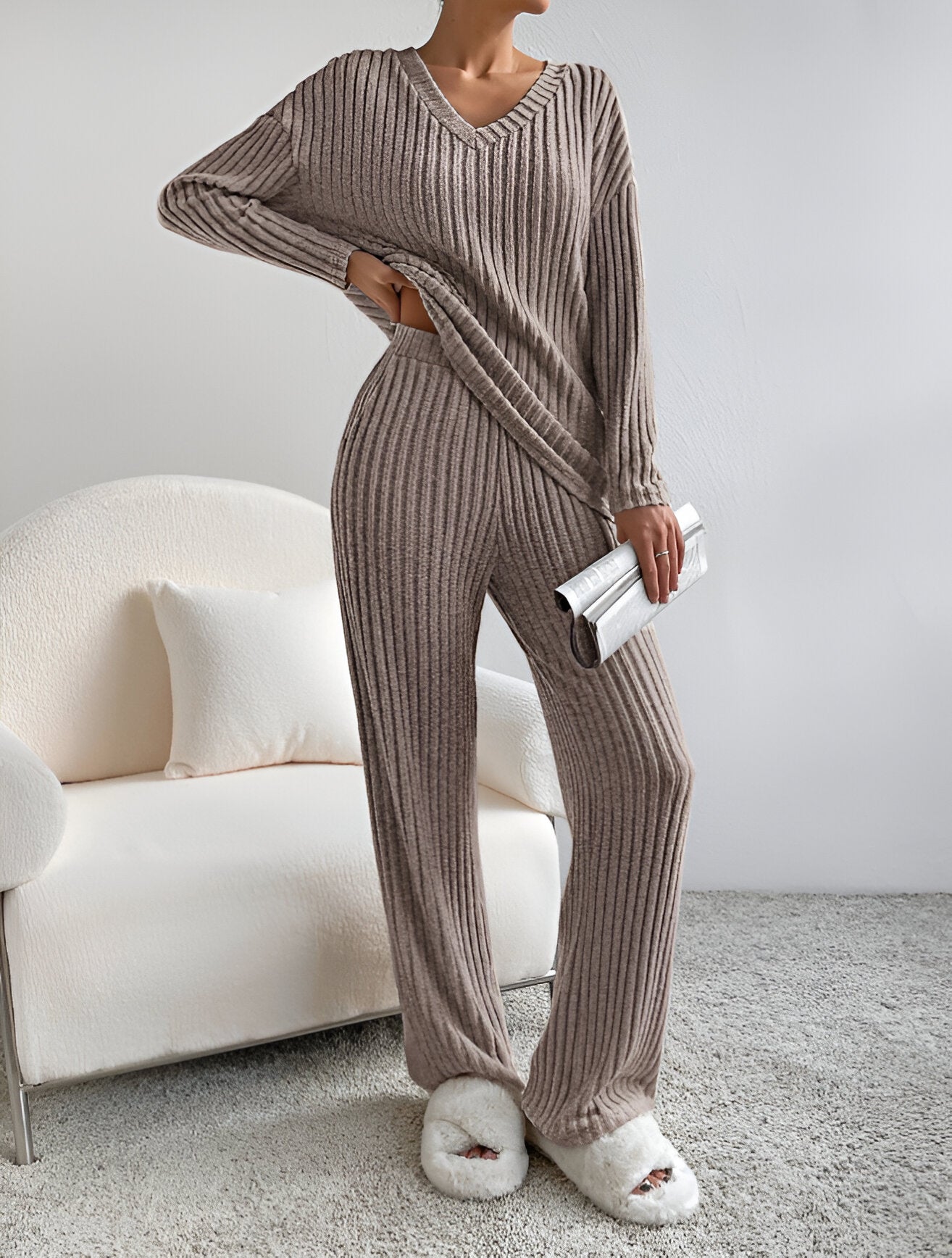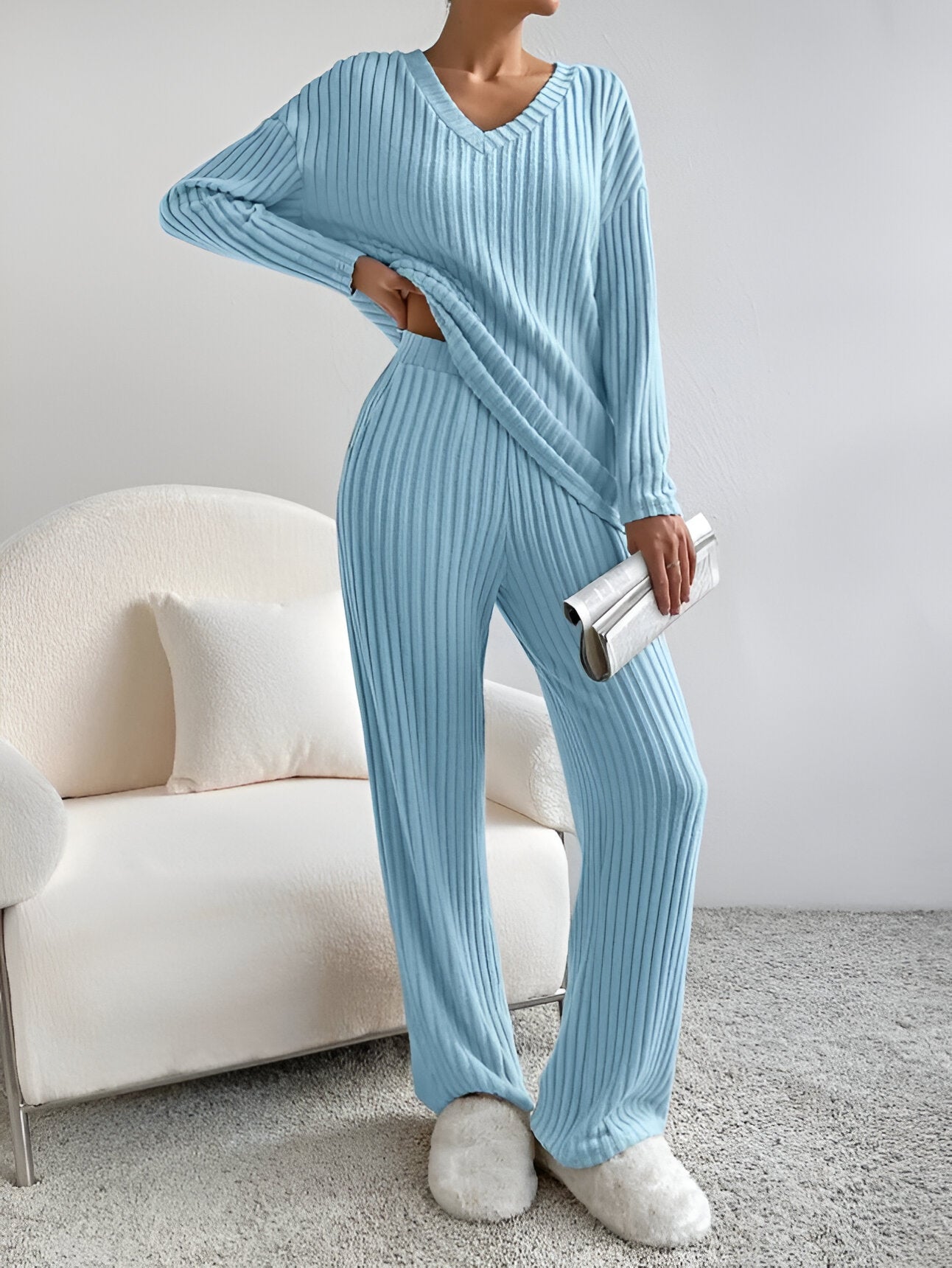 Die WIENER SCHLAFANZUNG vereint Komfort und Eleganz und eignet sich perfekt zum Faulenzen oder zum stilvollen Ausgehen. Aus weichem, atmungsaktivem Material gefertigt, bietet dieses zweiteilige Set aus Pullover und Hose das ganze Jahr über Gemütlichkeit.